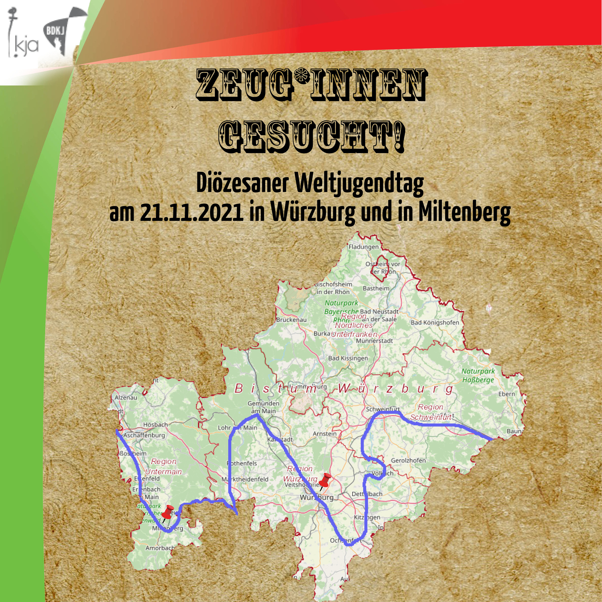 Bislang feierten wir jedes Jahr am Palmsonntag den Diözesanen Weltjugendtag in unserem Bistum. Papst Franziskus hat nun den Termin für die Diözesanen Weltjugendtage dauerhaft auf den Christkönigssonntag verlegt. Dies ist der Sonntag vor dem 1. Advent. Darum laden wir nun am Christkönigsfest, 21.11.2021, alle Jugendlichen und jungen Erwachsene im Alter von 14-35 Jahren zur Mitfeier des Diözesanen Weltjugendtags ein. Die Hauptveranstaltung wird im Kilianeum - Haus der Jugend stattfinden. Dabei steht im Mittelpunkt die Begegnung, der Austausch und die Feier des Glaubens bei Gesprächen über Gott und die Welt mit interessanten Gesprächspartner*innen, Workshops und der Feier eines Gottesdienstes.