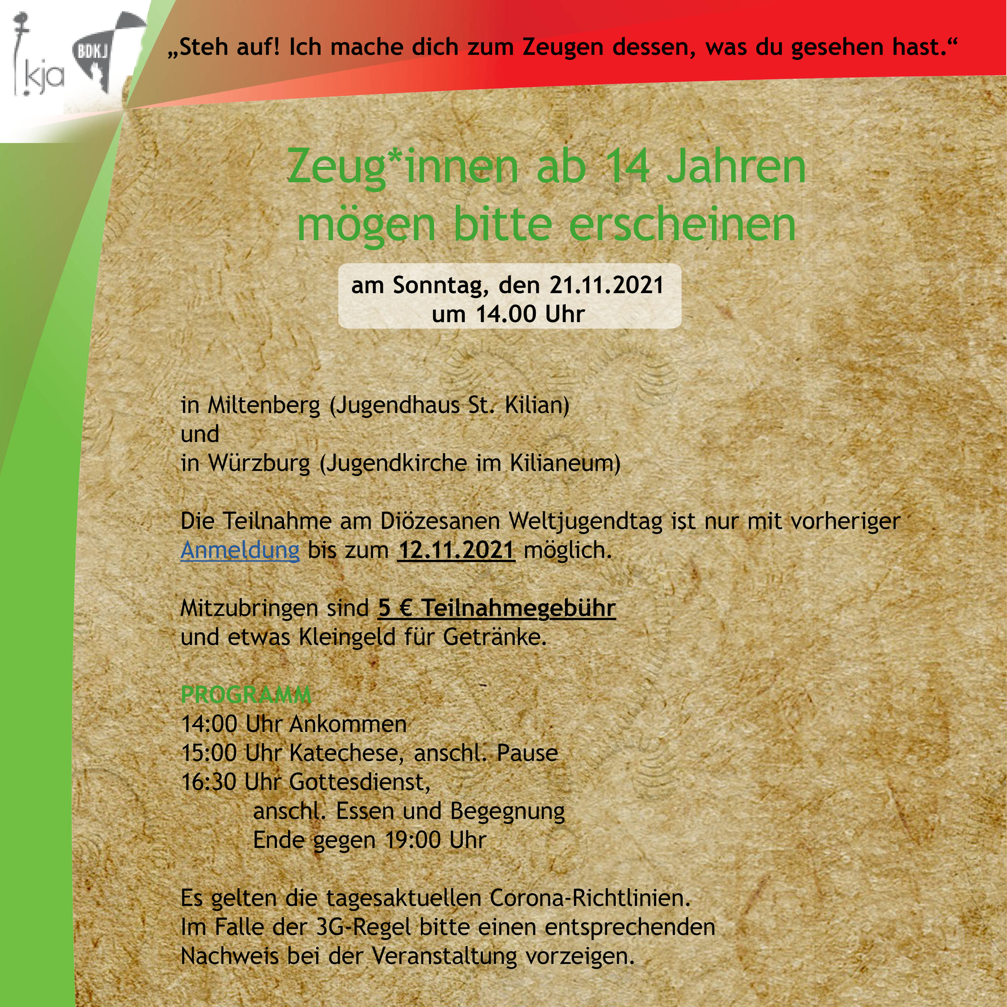 Weitere Infos & Anmeldung unter: www.kja-wuerzburg.de/veranstaltungen/weltjugendtag/