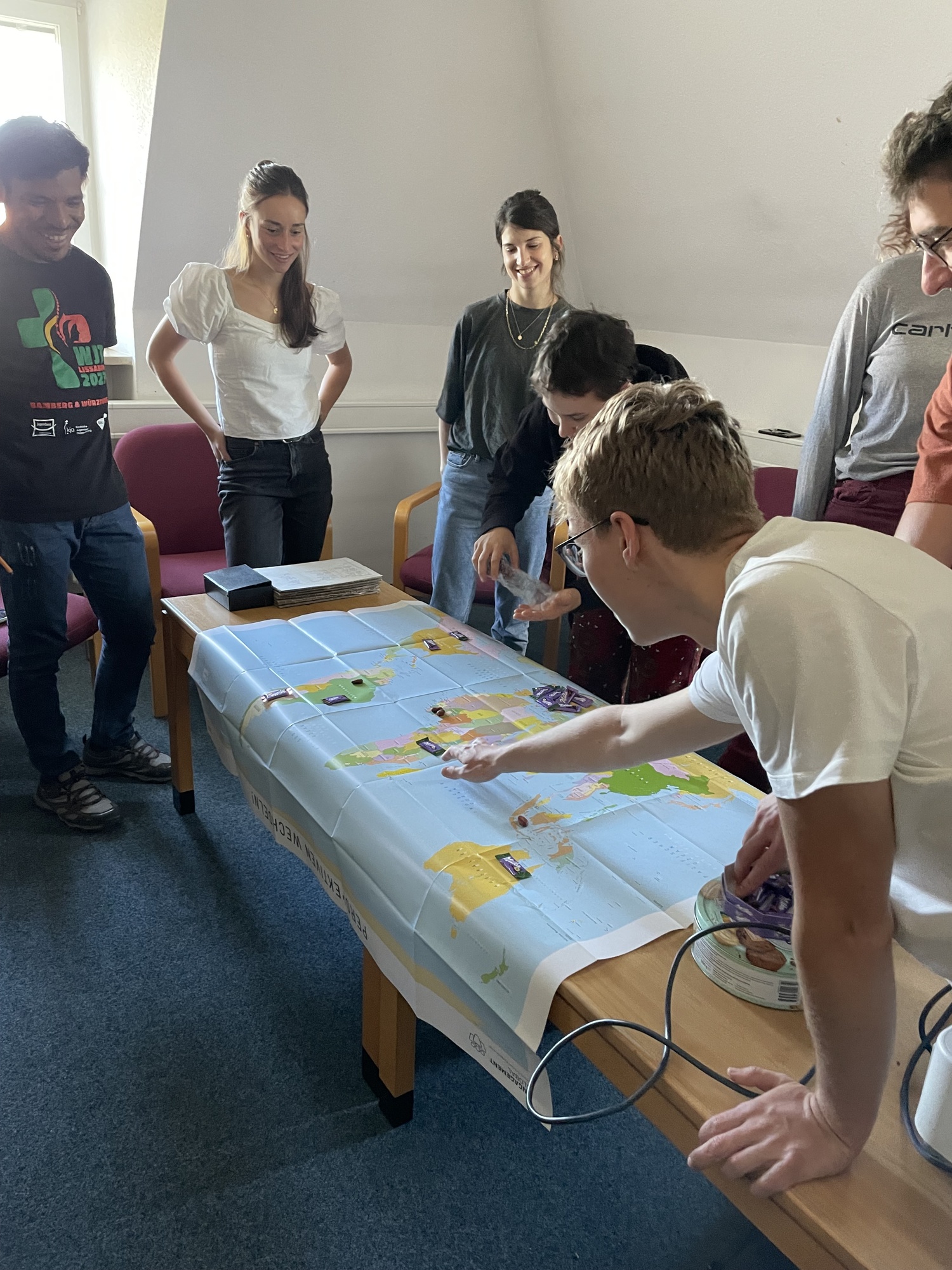 Am Samstag Vormittag kam Magnus Meier vom Programm Bildung trifft Entwicklung (BtE) und sprach mit uns über das Thema Kakao- und Schokoladenproduktion. In einer kleinen Challenge konnten wir uns selbst damit beschäftigen, wer an der Produktion von Schokolade beteiligt ist, wer welchen Verdienst hat und welche Interessen es hier zu vertreten gilt.