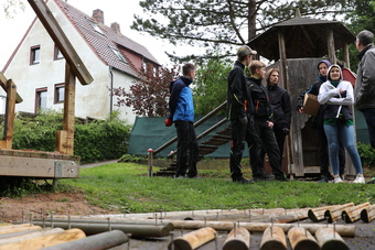 Würzburg (POW) Rund 2000 Kinder und Jugendliche aus dem Bistum Würzburg haben sich in 86 Gruppen bei der 72-Stunden-Aktion des Bunds der Deutschen Katholischen Jugend (BDKJ) zwischen Donnerstag, 18. April, und Sonntag, 21. April, im Bistum für andere eingesetzt und die Welt ein Stückchen besser gemacht. Schirmpaten der 72-Stunden-Aktion waren Bischof Dr. Franz Jung und der Bundestagsabgeordnete Niklas Wagener (MdB, Bündnis 90/Die Grünen). Kooperationspartner sind die Kirchliche Jugendarbeit (kja), der Bezirksjugendring Unterfranken, Caritas und Young Caritas. Bischof Jung besuchte während der Aktion in allen Regionen Gruppen und legte wiederholt selbst mit Hand an, zum Beispiel beim Fertigen von Holzkonstruktionen. „72 Stunden sind drei Tage. Dass sich in drei Tagen Grundsätzliches verändern kann, haben wir erst an Ostern gefeiert. Danke für Euren Einsatz“, rief er zum Auftakt den Beteiligten in Schweinfurt zu.