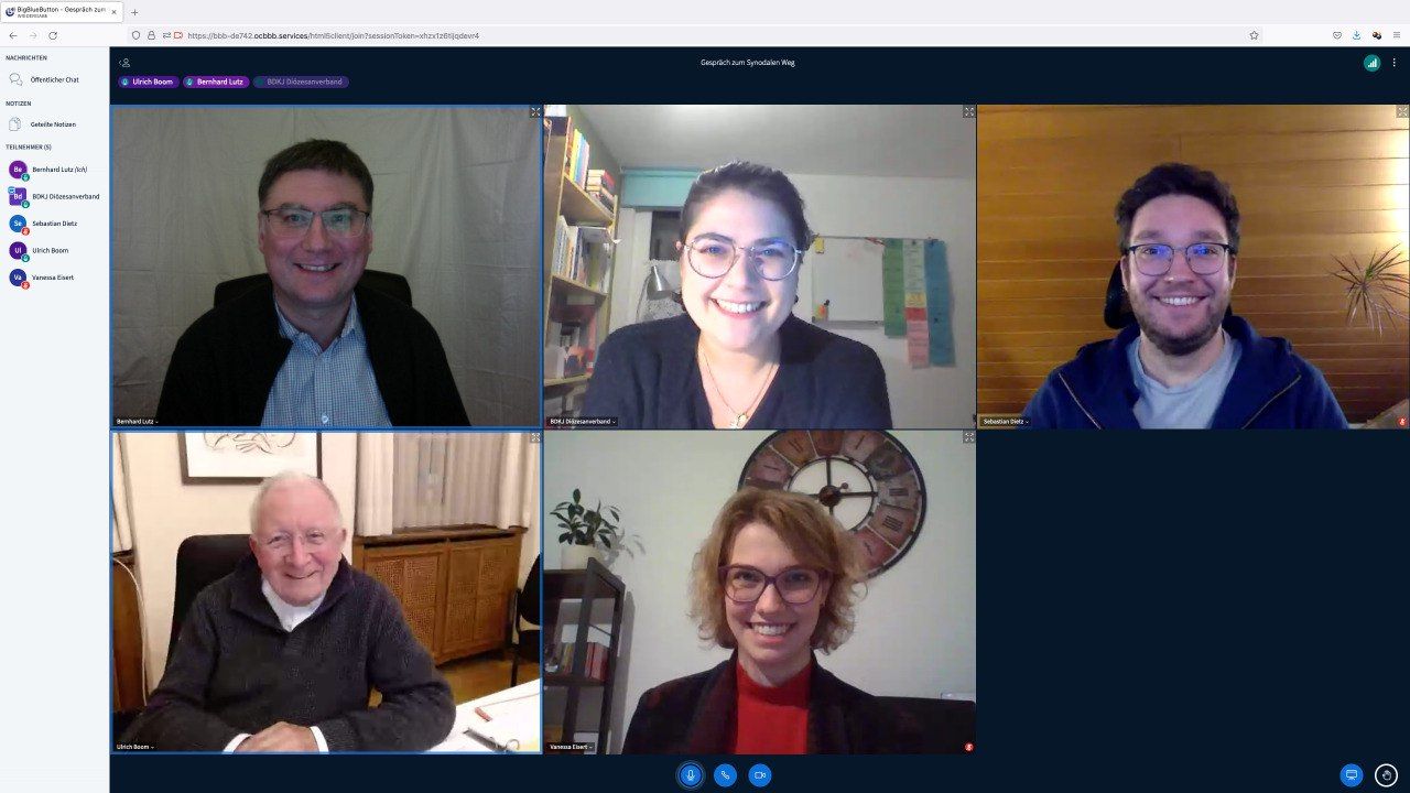 Daher ist es nur konsequent, wenn sich der BDKJ mit diesen Positionen in den synodalen Weg einbringt und mit den Synodalmitgliedern Kontakt hält. Denn hier besteht die Möglichkeit, etwas zu bewegen und zu verändern. Dass das notwendig ist, sieht auch Weihbischof Ulrich Boom so, wie er in einem Gespräch mit dem BDKJ-Diözesanvorstand klar gemacht hat: "Wir wissen schon lange, was in Bezug auf Veränderungen in der Kirche zu tun ist, aber wir haben es noch nie so konkret formuliert." Im Rahmen einer Videokonferenz haben sich der Weihbischof und der BDKJ-Diözesanvorstand über die Themen, die auf der Synodalversammlung am kommenden Wochenende besprochen werden, ausgetauscht. Christina Lömmer machte dabei deutlich, dass als Konsequenz aus der MHG-Studie diese wissenschaftlichen Erkenntnisse über strukturell begünstigen Missbrauch der Maßstab für die Ergebnisse des synodalen Weges sein müssen. "Eine Art MHG-Brille wird in der Diskussion der Texte des Synodalen Weges aufgesetzt.“ berichtete Weihbischof Ulrich Boom aus den vergangenen Gesprächen und ergänzte: „Aber die Frage ist, ob das die einzige Brille ist. Vielleicht muss es vielmehr eine Brille der Demut sein."