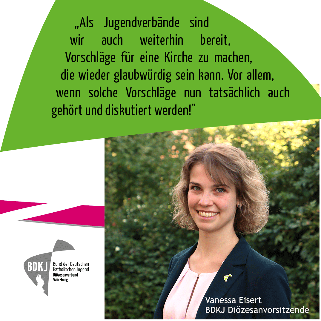 „Die Beschlüsse sind deutliche Fortschritte für die katholische Kirche und notwendige Grundlagen zu systemischen Veränderungen. Ich bin froh, dass sie eine Mehrheit der Synodalen und der Bischöfe erhalten haben. Die Texte nehmen die Ergebnisse der MHG-Studie und der Gutachten zu sexuellem Missbrauch ernst. Insbesondere der Beschluss zum Thema ‚Macht und Gewaltenteilung‘ beinhaltet ein weitreichendes Umdenken zu den Strukturen und Handlungen der katholischen Kirche.“