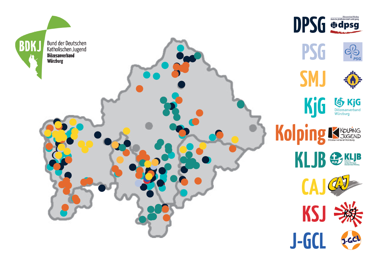 Die zwölf Jugendverbände und elf Regional- und Stadtverbände bilden zusammen den BDKJ Würzburg.